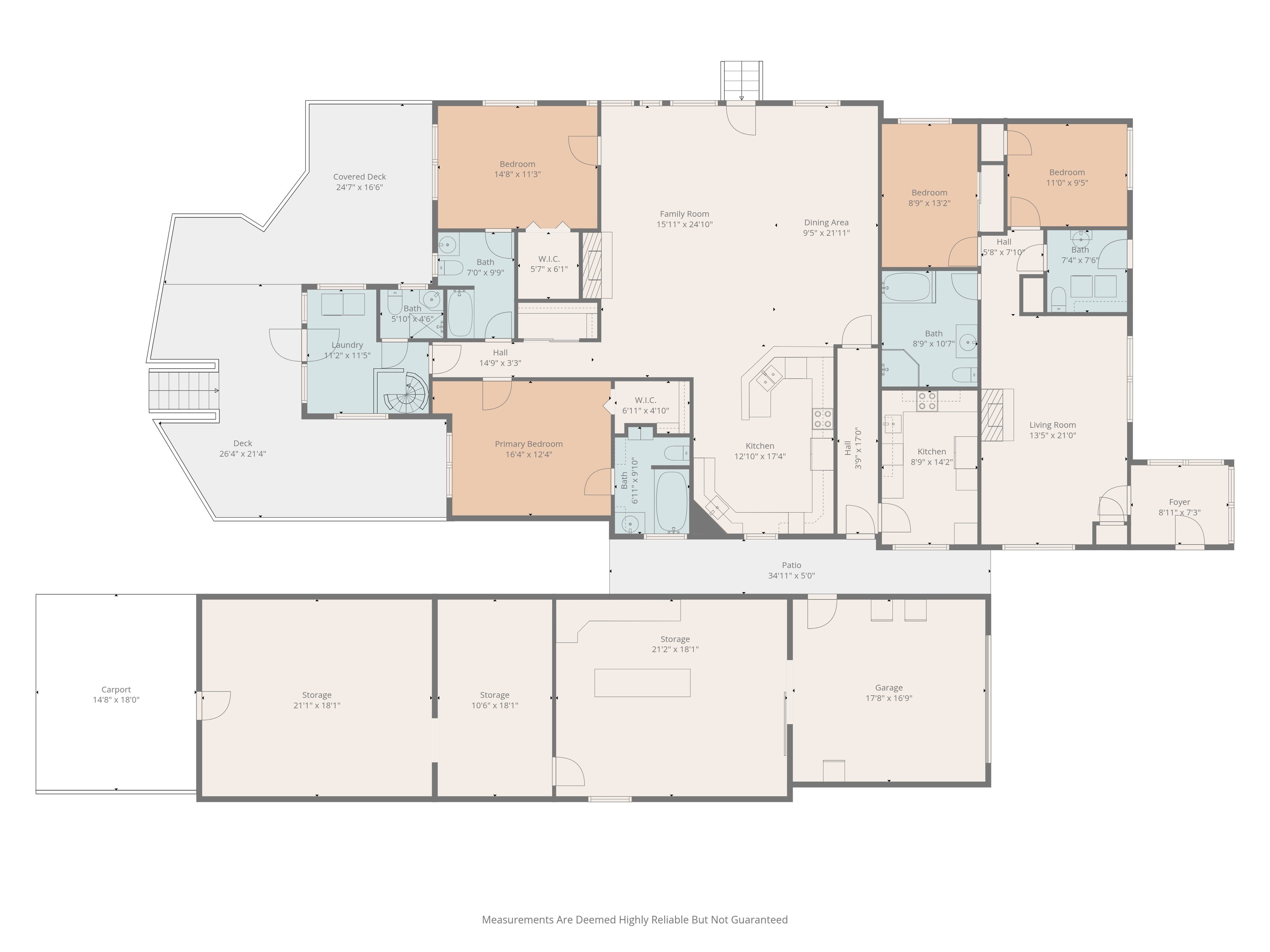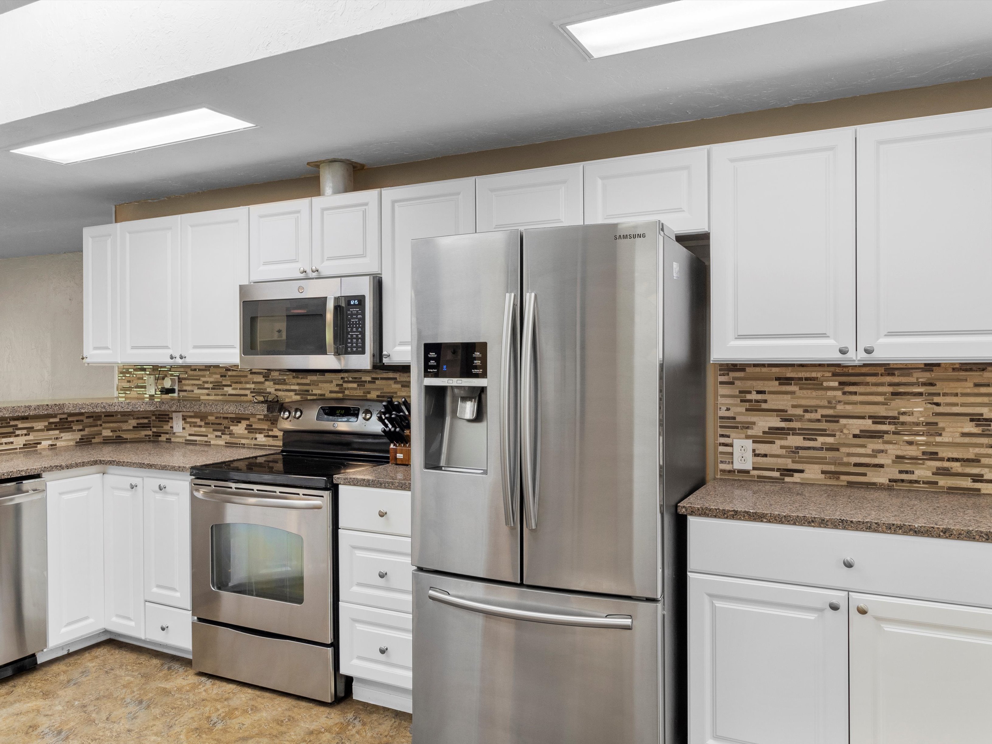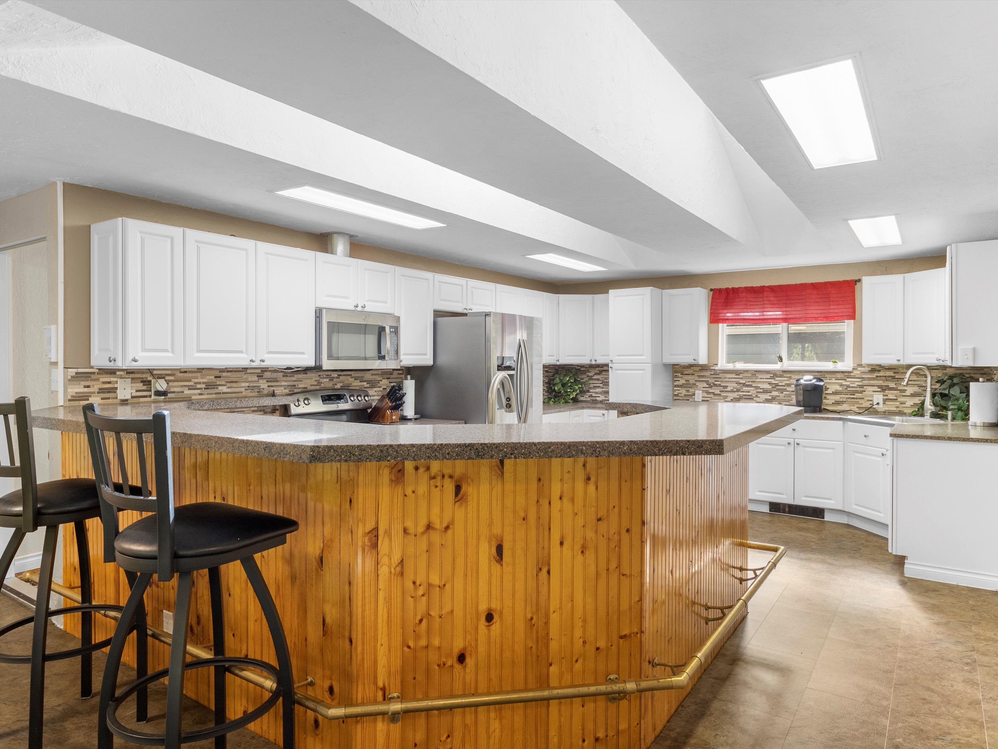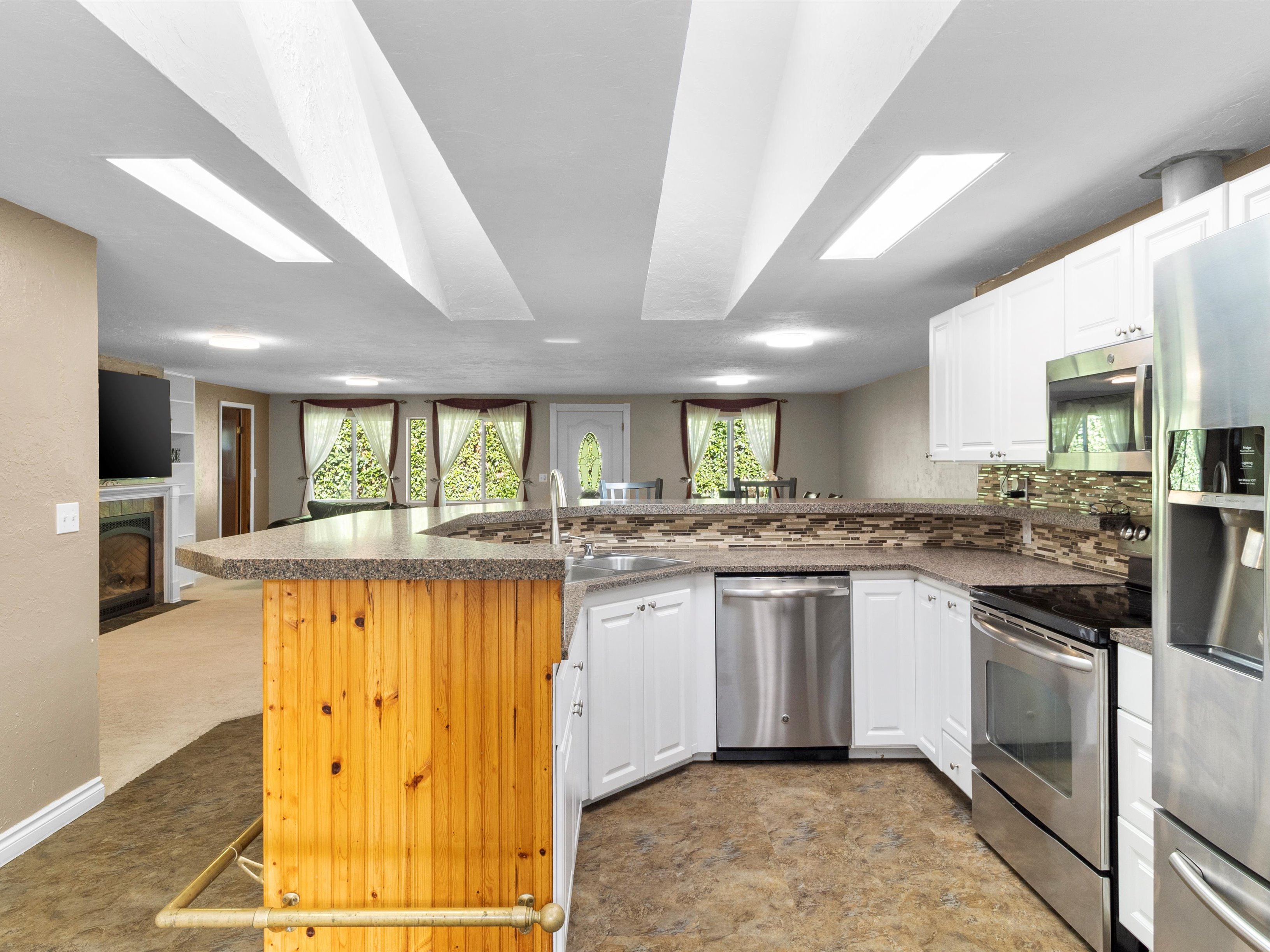 Inside the main residence, comfort and function come together beautifully. You’ll find two spacious bedrooms, one full and two three-quarter baths, and an open great room perfect for gatherings. The stunning chef’s kitchen steals the spotlight with stainless appliances, a breakfast bar, and room to cook, create, and entertain.