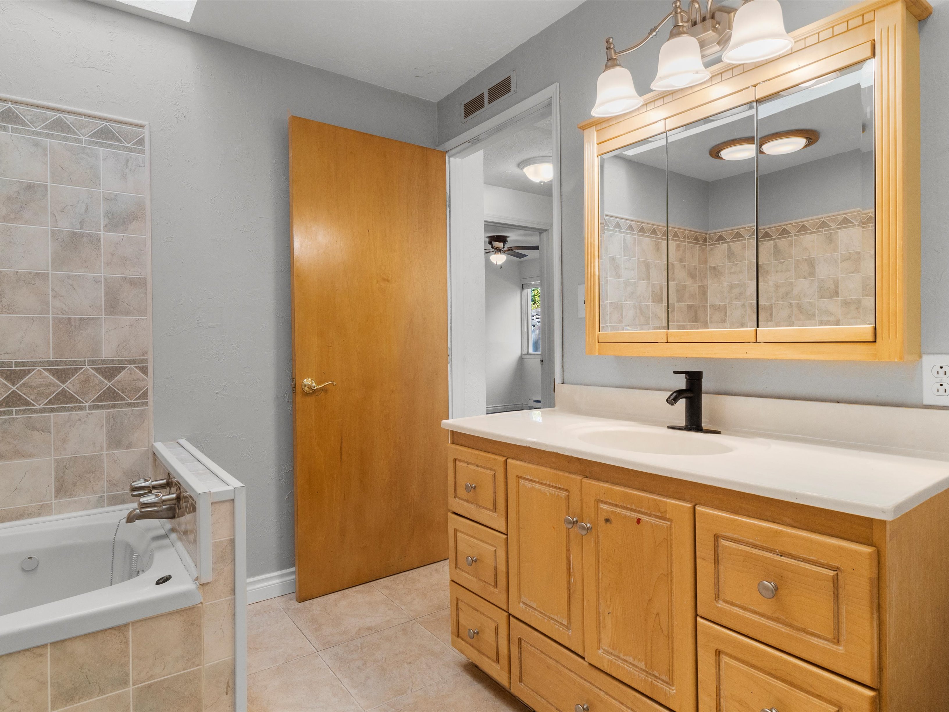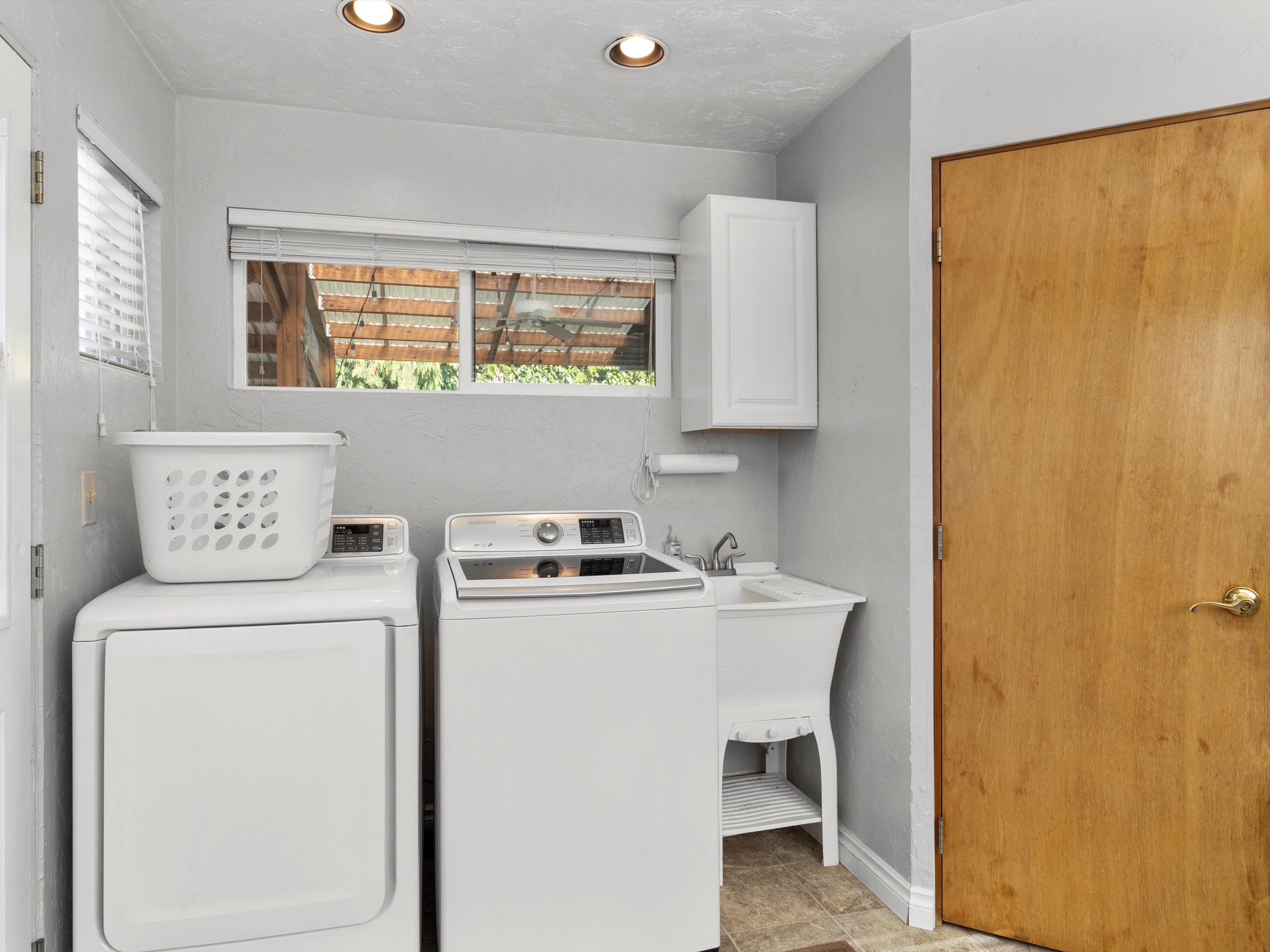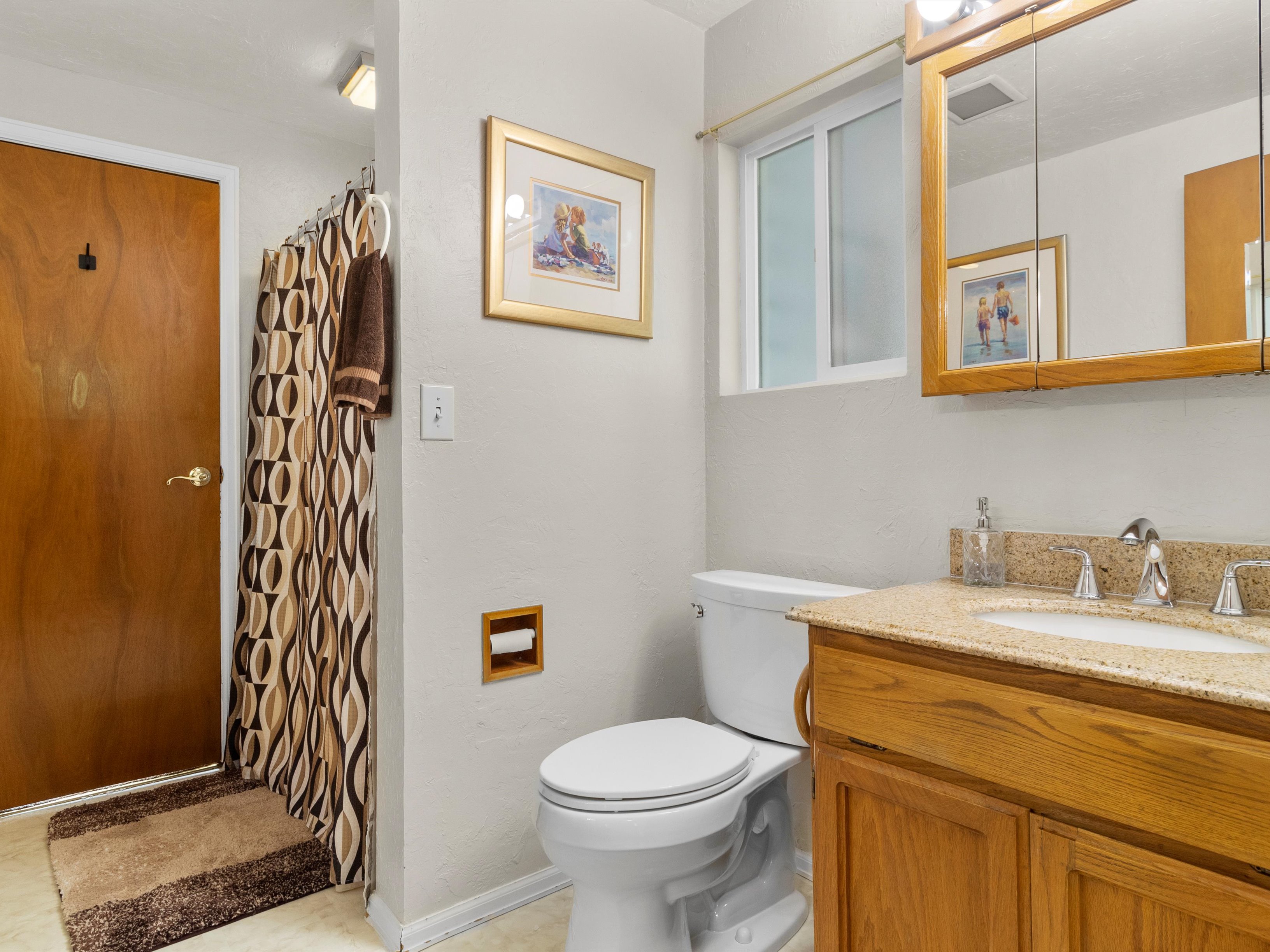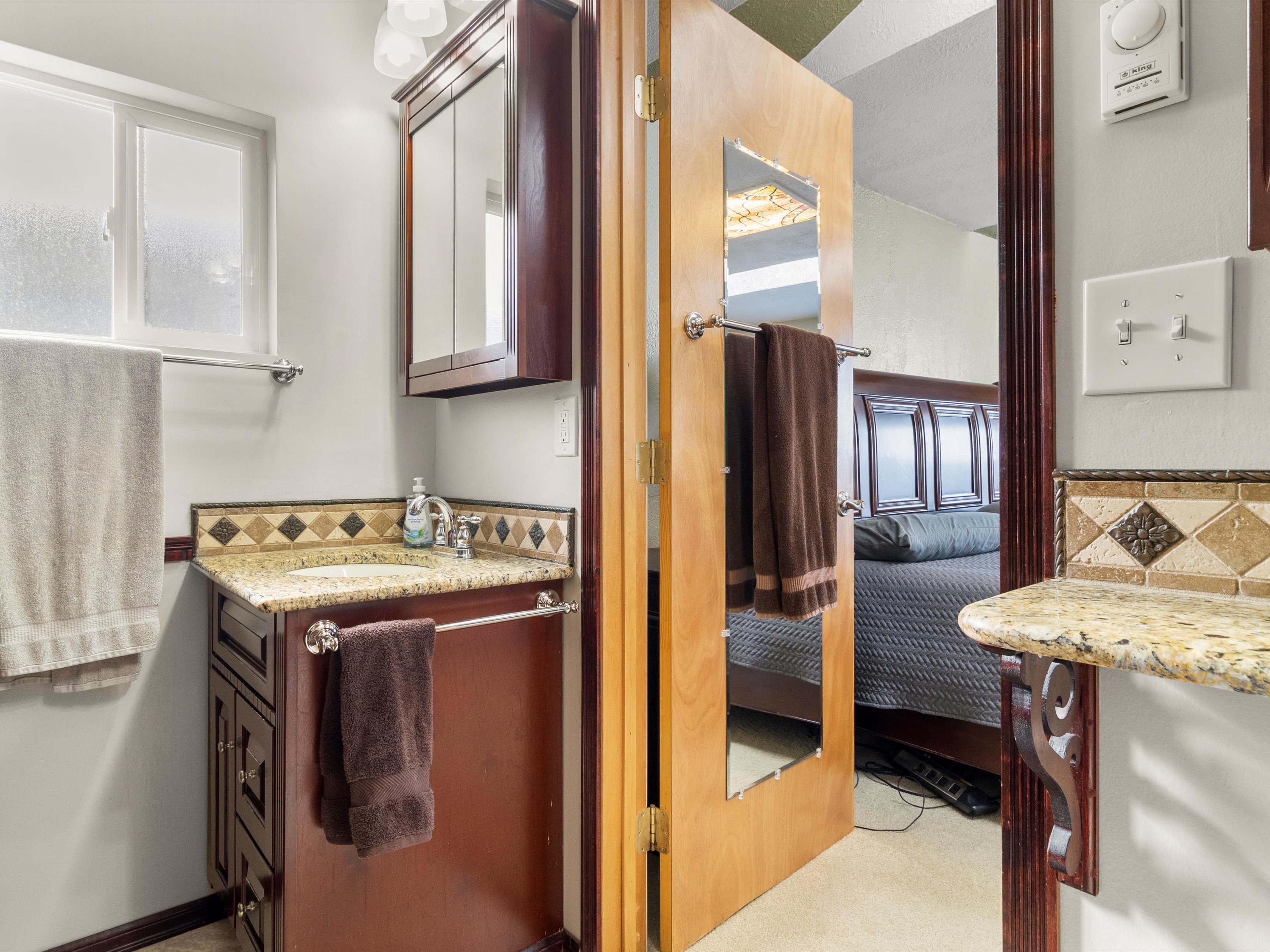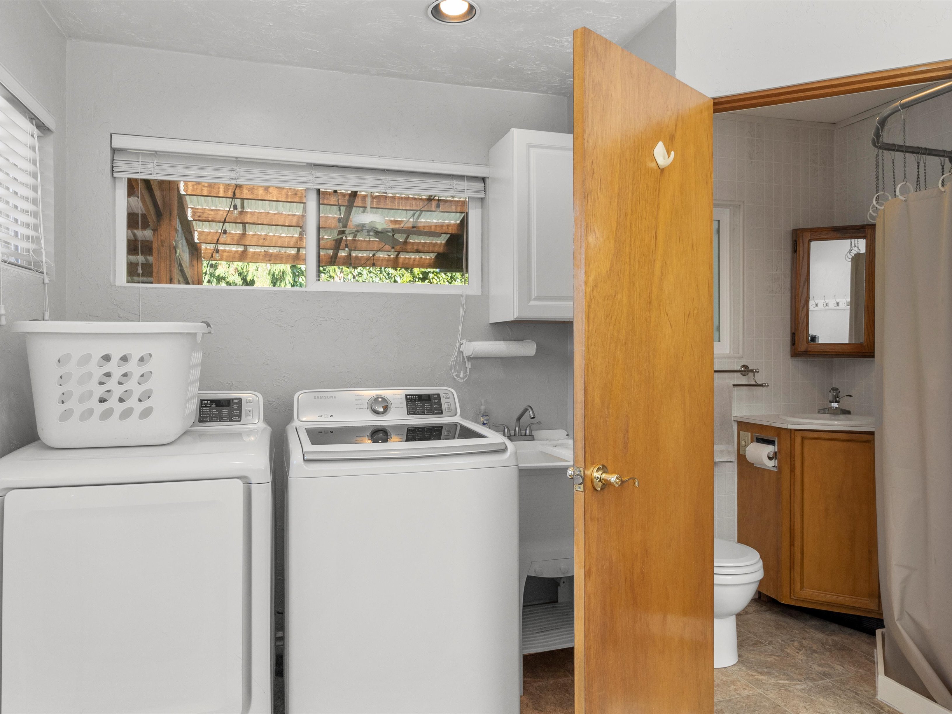 Connected to the main home by a private entry hallway, the front unit adds even more opportunity. With two bedrooms, one-and-a-half baths, its own private yard, and separate entrance, it’s perfect for extended family, guests, or rental income.
