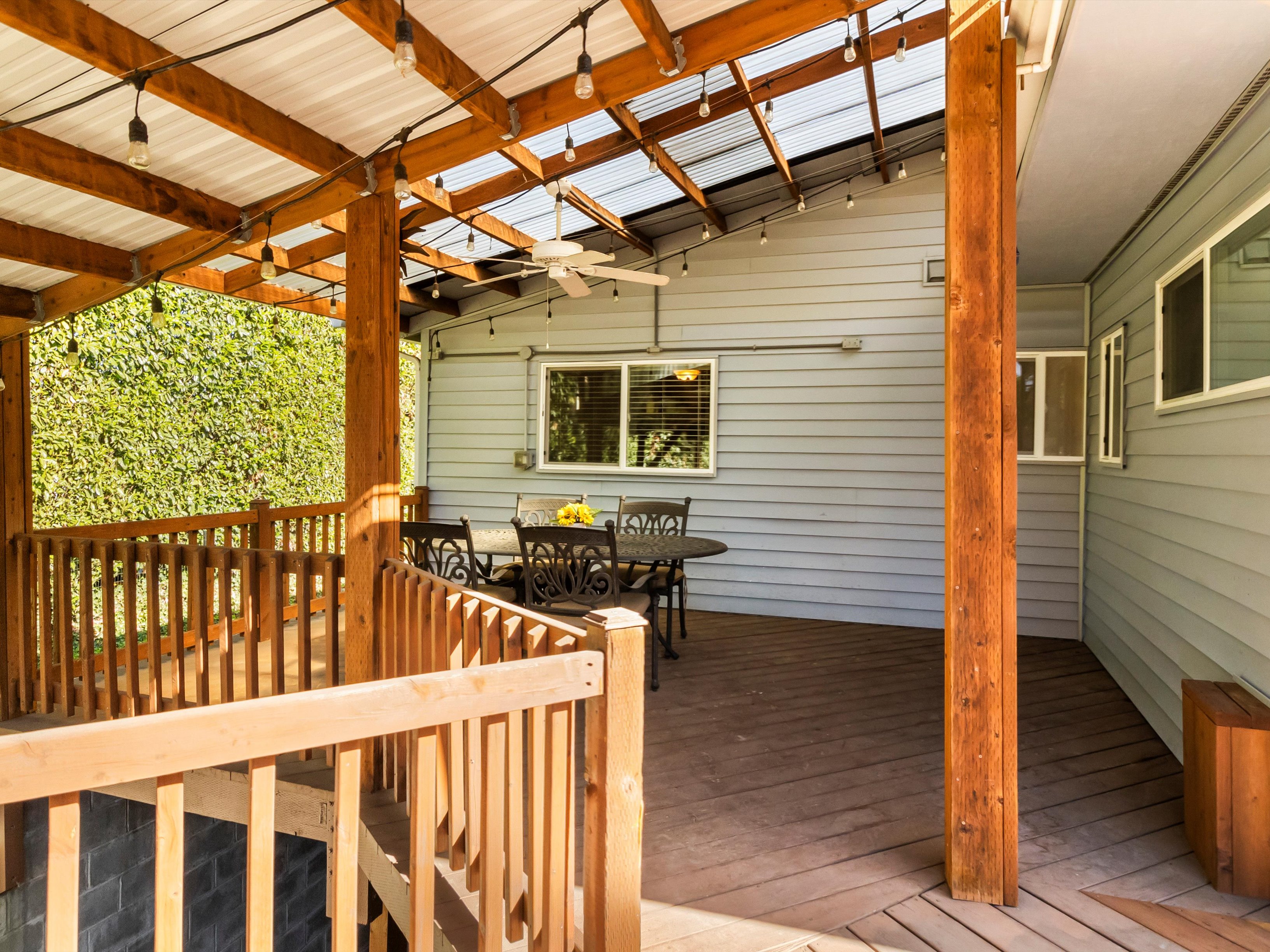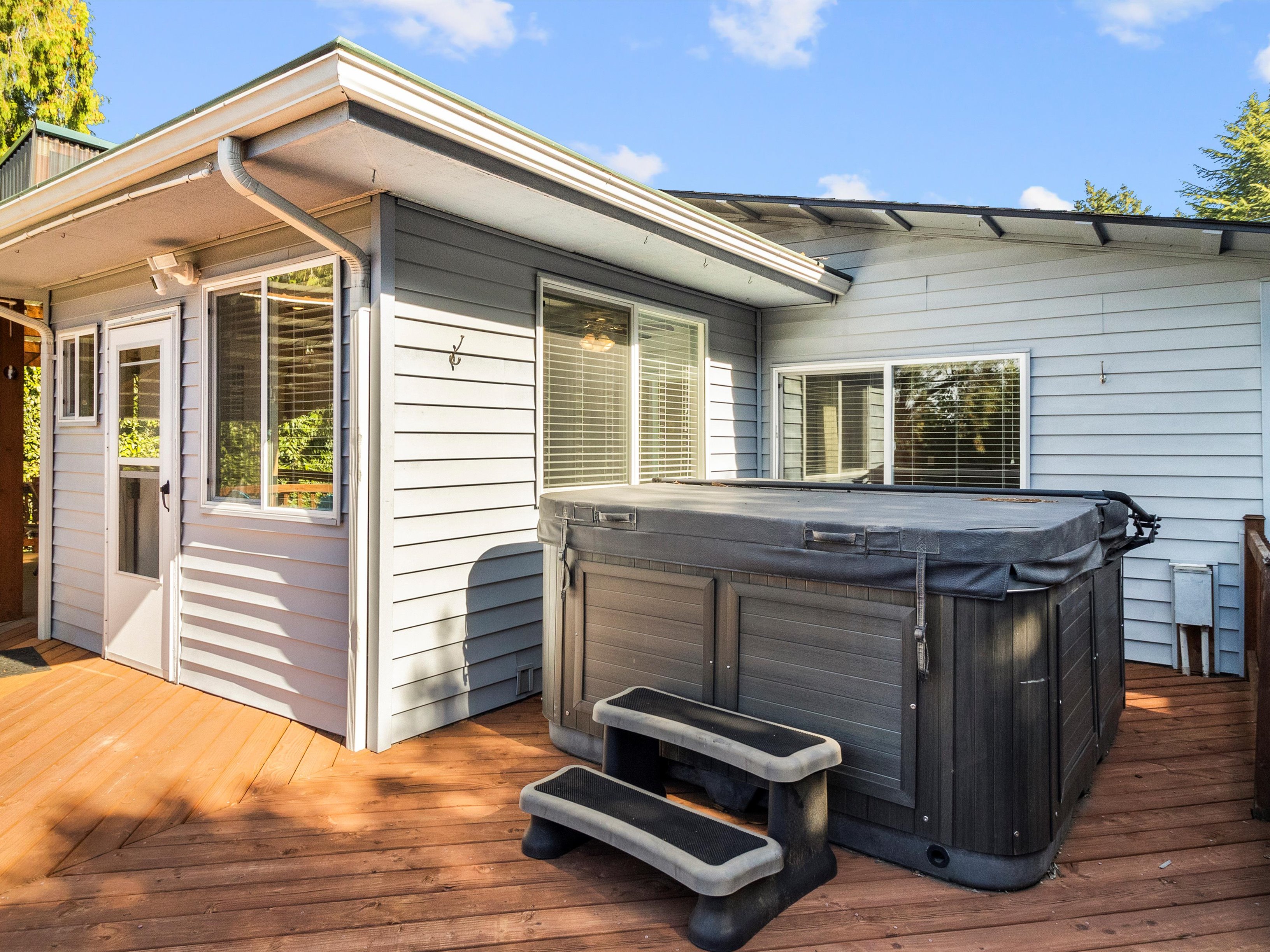 When the work is done and it’s time to unwind, step outside to your own backyard retreat. The large, partially covered deck is ideal for relaxing or entertaining, complete with a hot tub where you can soak under the stars.
